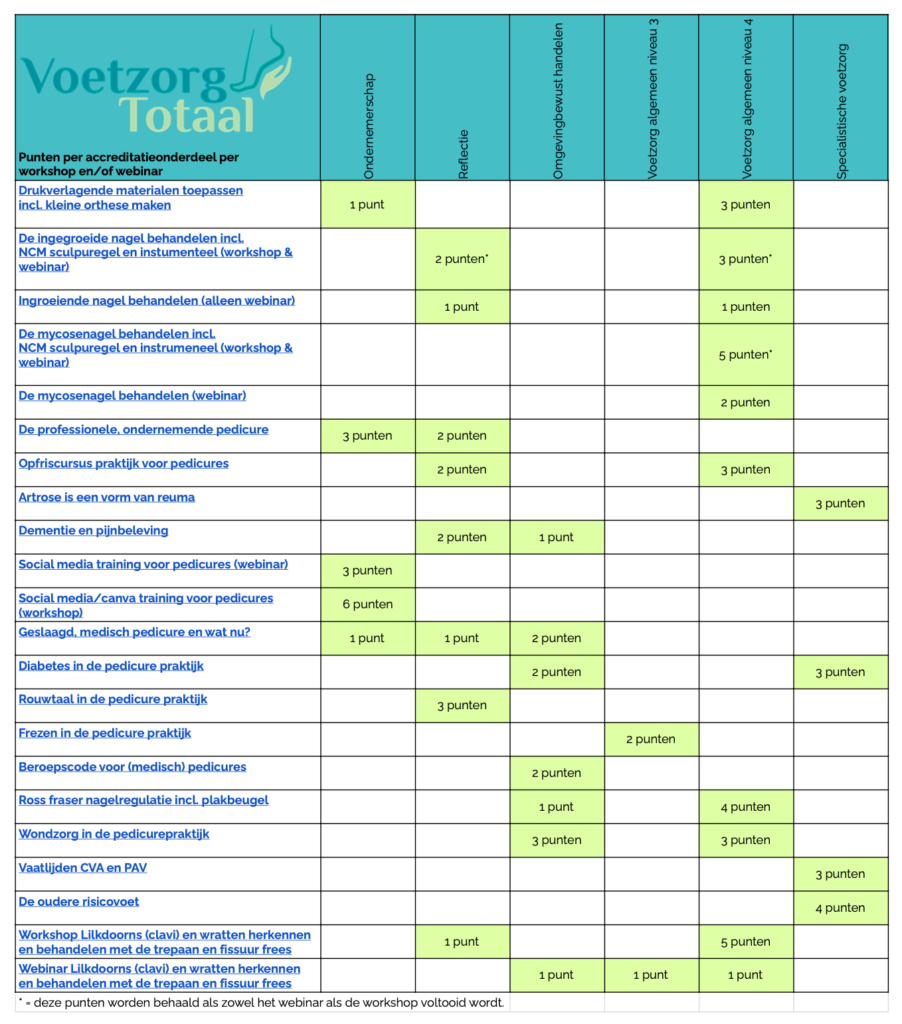 - Opfriscursus voor (medisch) pedicures (3 punten + 2 punten Reflectie)